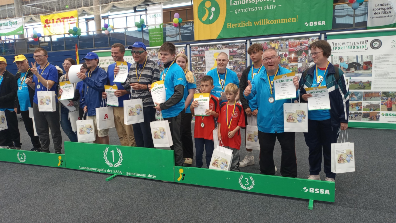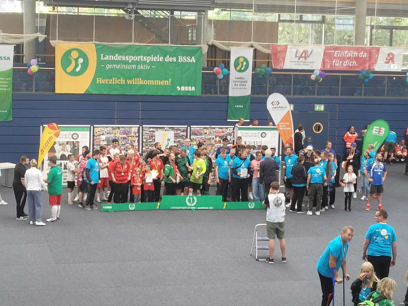 Am 23. August fanden in Weißenfels die 34.Landssportspiele des BSSA statt. Auch wir waren mit einer großen Mannschaft am Start. Als Paare gin es gemeinsam an des Start zum Wettwürfeln, Zielwerfen, Farb-Puzzlen und zum "Saaleenten-Wettfahren". Mit vile Freude und sportlichem Ehrgeiz wurde um jede Sekunde und um jeden Punkt gekämpft. Es hat sich gelohnt. Ben und Leon konnten gleich drei Medaillen gewinnen und auch Jeremy und Leon bekamen zwei mal Edelmettall. Weitere Medaillen gab es für Franziska und Frau Flochowa sowie Marcellino und Herrn Harnisch.