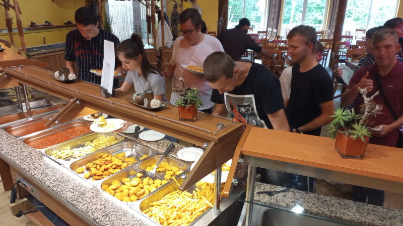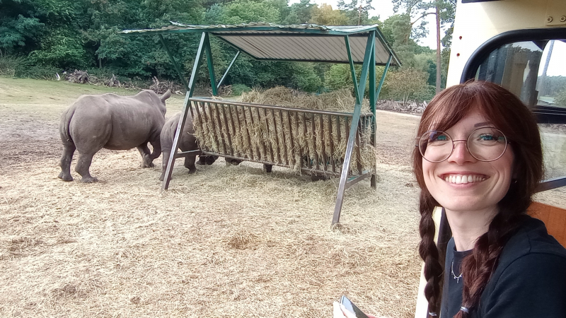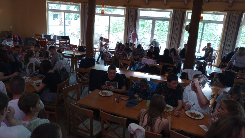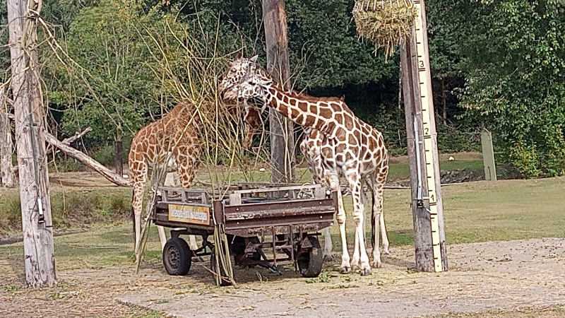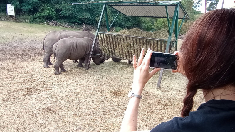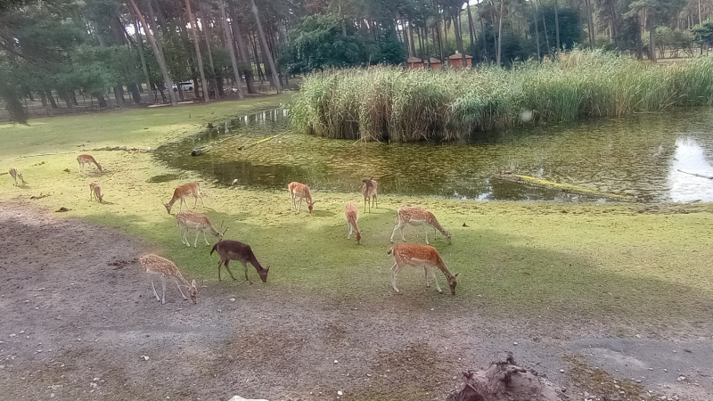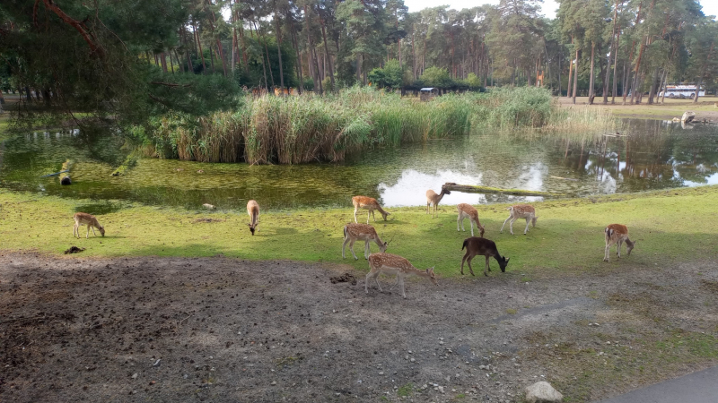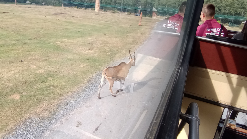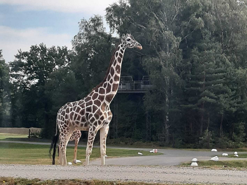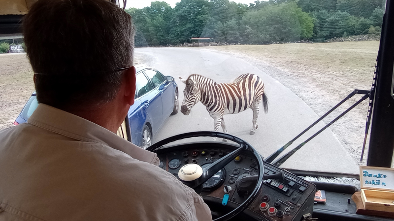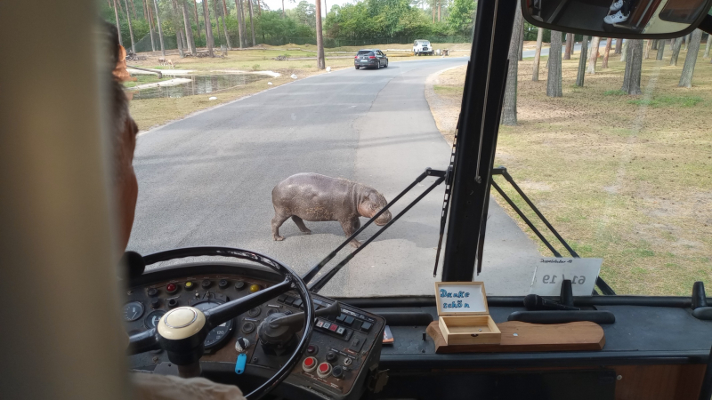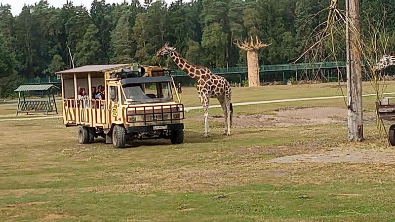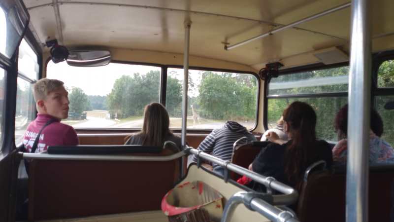 Angekommen in Hodenhagen warteten schon spezielle Safari-Busse auf uns, in die wir uns verteilen konnten und schon ging es los auf einen spannende Safarie. Dabei konnten wir Tiere Afrikas, Amerikas und Asiens sehen. Dazu gehörten Zebras, Giraffe, Affen, Nashörner, und sogar Raubkatzen wie Löwen und Leoparden. Nach der einstündigen Fahrt wartete im Restaurant "Savanne" schon ein Mittagsbuffet auf uns. Zur Auswahl standen Nudeln mit Tomaten- oder Bolognesesoße oder Chicken-Nuggets mit Pommes.