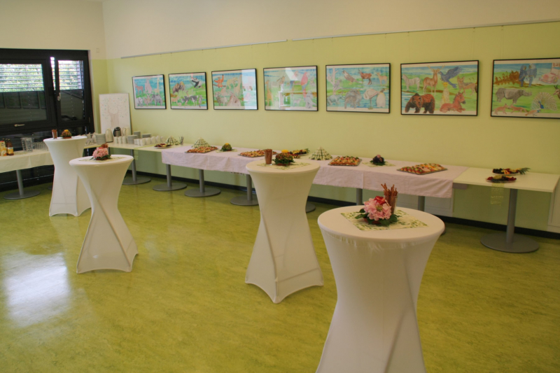 Gut gelaunt konnten dann die Klassen in "Eigenregie" diesen feierlichen Schultag ausklingen lassen. Unsere Ehrengäste hingegen konnten sich nocheinmal unser Schulgebäude anschauen. Dabei waren auch viele Zeichnungen und Gemälde unserer Schüler ausgestellt, die in den letzten Jahren unter fachkundiger Anleitung entstanden sind. Wir können auch Kunst, nicht nur Sport!!!