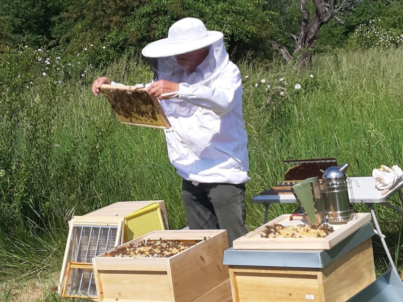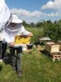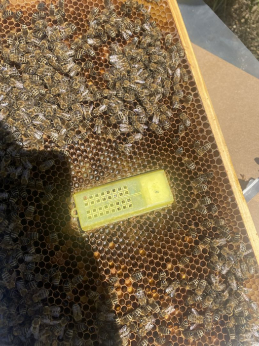 Zwischendurch schauten wir immer wieder nach unseren Völkern. Während sich das eine Volk prächtig entwickelte, sodass wir die Beute sogar erweitern konnten, brauchte das andere etwas Unterstützung. Dort musste die Königin ausgetauscht werden – eine wichtige Maßnahme, damit das Volk wieder stärker werden konnte.