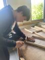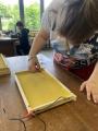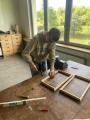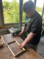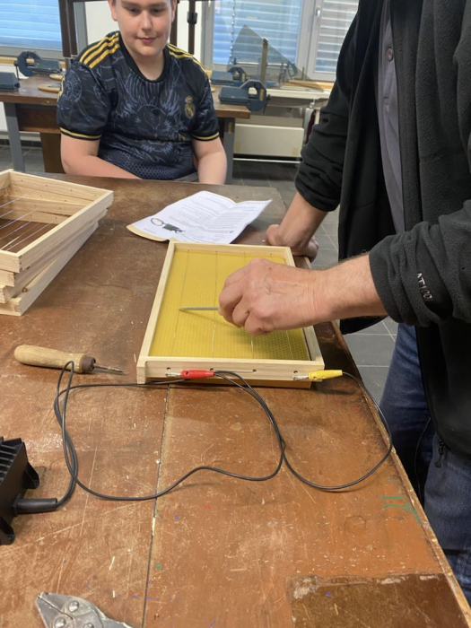 Nach dem Einzug unserer Bienen ging es für uns mit vielen spannenden Arbeiten weiter. Im Werkraum haben wir zunächst Rähmchen vorbereitet: Dazu mussten wir Abstandshalter einnageln und anschließend die Mittelwände einlöten. Dabei war Teamarbeit gefragt und wir konnten viel über den Aufbau einer Beute lernen.