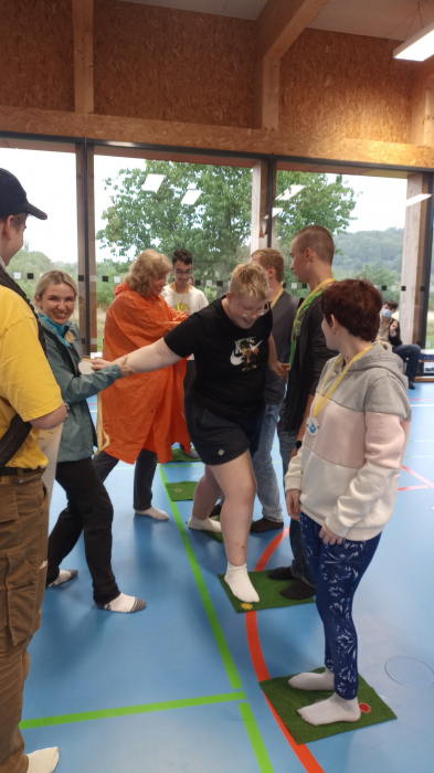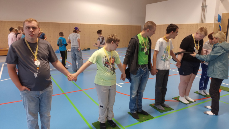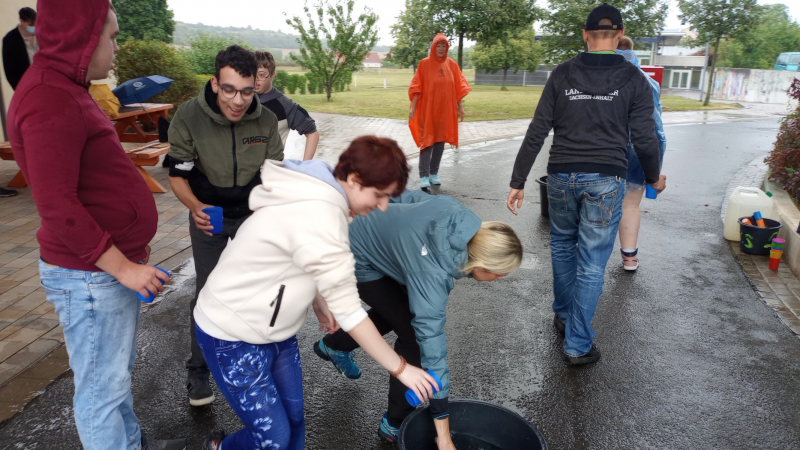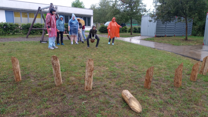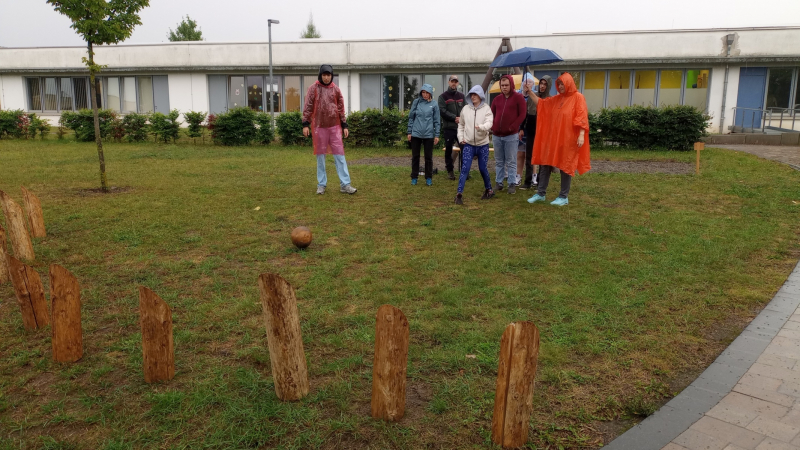 Leider meinte es das Wetter in diesem Jahr nicht so gut mit uns. Pünktlich zur Eröffnung der Spiele fing es an zu regnen und es hörte bis zum Ende nicht wieder auf. Die Meisten ließen sich dadurch aber die gute Laune nicht verderben. Spontan wurden einige Stationen unters Dach oder in den Bewegungsraum verlegt, was aber nicht mit allen Stationen möglich war. Also ging es mit Regenschirm oder Regenjacke auf den Rundkurs und den Kampf um gute Zeiten und viele Punkte. Im Mittelpunkt standen aber der Spaß und die Teamarbeit bei der Bewältigung der Aufgaben.