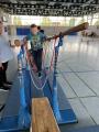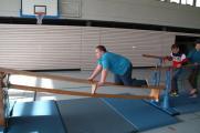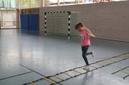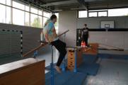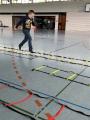 An mehreren Wissens-Stationen ging es um das Verhalten im Falle eines Feuers, um den Umgang mit einem Feuerlöscher, das Absetzen eines Notrufes oder um die Selbst- und Fremdrettung. Mit der Kübelspritze konnten die Schüler selbst aktiv werden und zielgerichtet mit der Spritze Kegel umwerfen. In der Turnhalle war ein "Rettungsweg" aufgebaut den die Schüler bewältigen mussten und mit gleichmäßigem Rhythmus galt es, durch die (Koordinations-) Leiter zu hüpfen.
