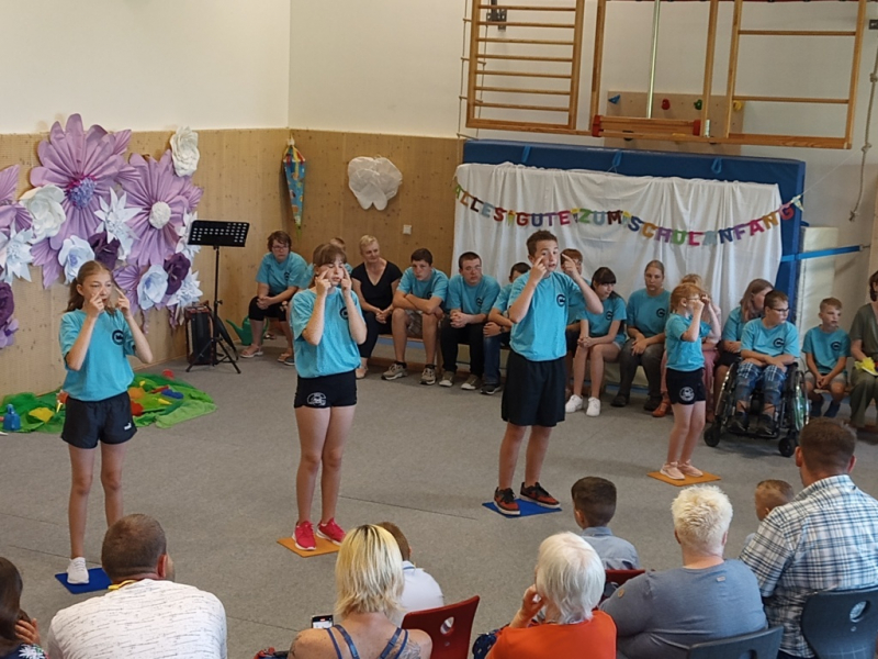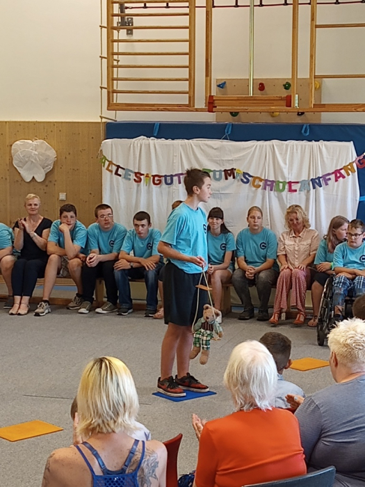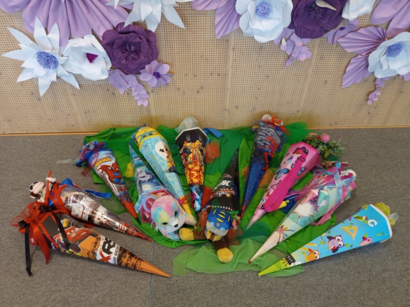 ... hieß es am 19. August auch bei uns. Mit einem kleinen Programm begrüßten wir unsere neuen Erstklässler und nachdem Frau Schröder die kleinen Zuckertüten gut gegossen hatte und die erste Unterrichtsstunde absolviert war, konnten unsere ABC-Schüzen ihre "ausgewachsenen" Zuckertüten in Empfang nehmen.