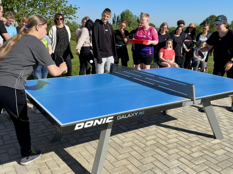 Nach den Reden wurde die Tischtennisplatte mit einem symbolischen ersten Ballwechsel eingeweiht. Die Schülerinnen und Schüler waren begeistert und nutzten sofort die Gelegenheit, das neue Spielgerät auszuprobieren. Die Freude am Spiel und die positive Energie waren überall spürbar. Wir möchten uns an dieser Stelle noch einmal herzlich beim Förderverein für die Realisierung dieses Projekts bedanken. Die Tischtennisplatte ist eine wunderbare Bereicherung für unseren Pausenhof und wird sicherlich für viele spannende Pausen und Freizeitaktivitäten sorgen.