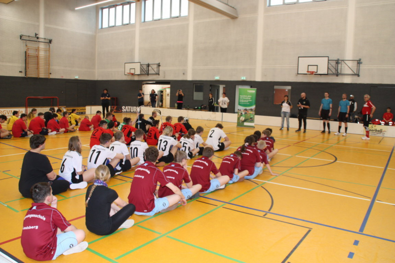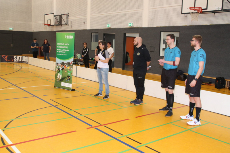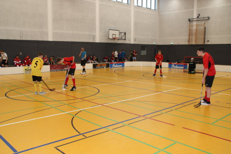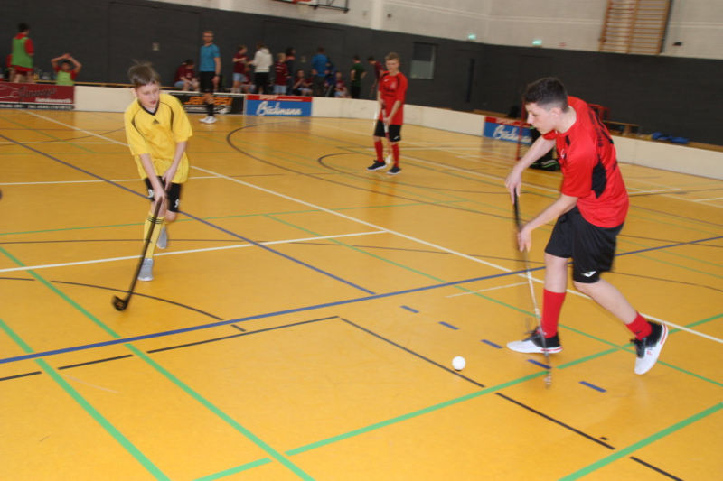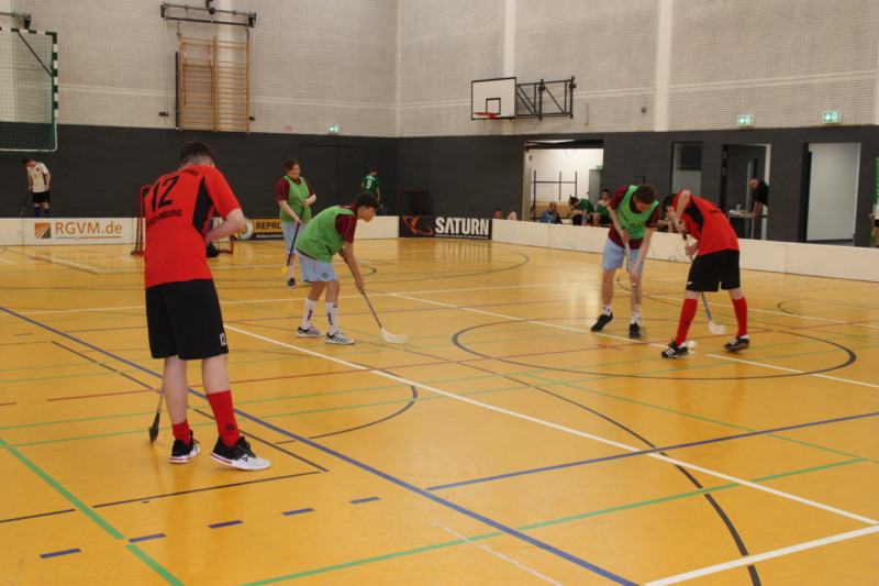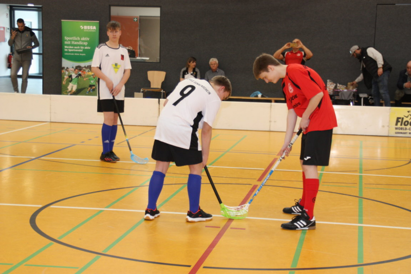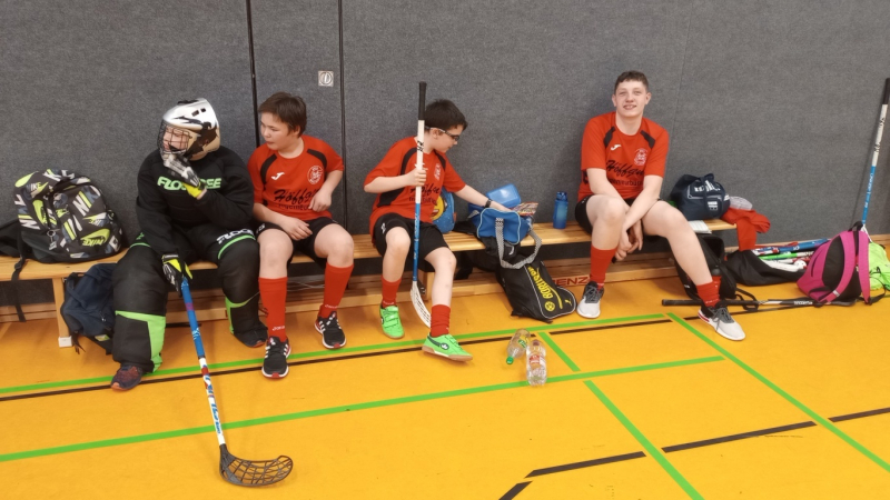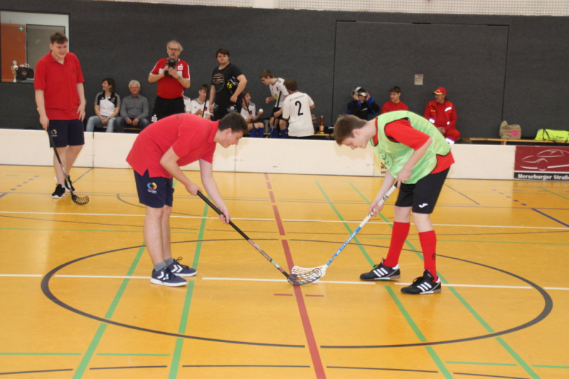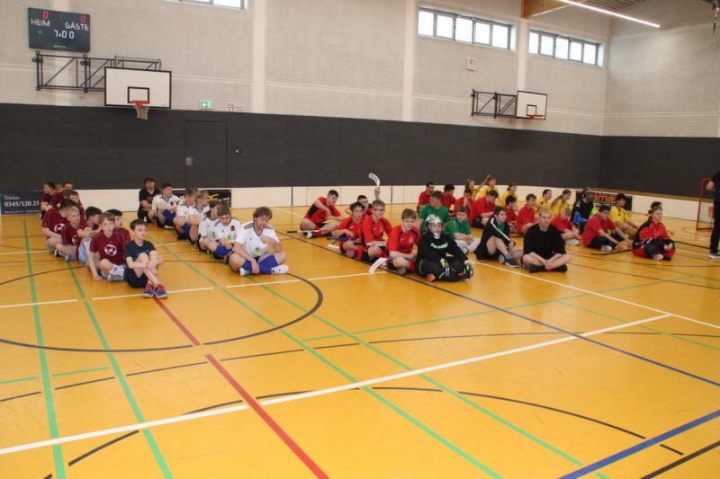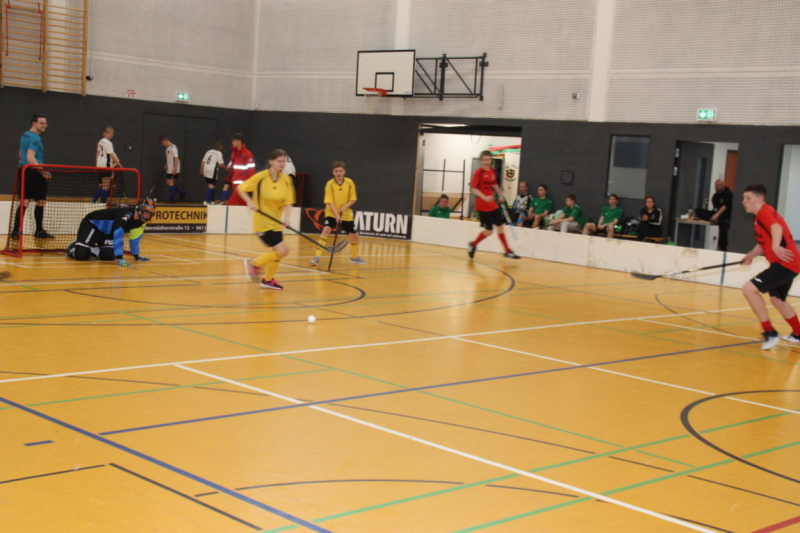 Mit guter Laune und hoch motiviert kamen wir in Halle an, wo uns fünf weitere Teams aus Landsberg, Wittenberg, Großkayna, Halle und Magdeburg erwarteten. Nach einer kurzen Eröffnung starteten die Spiele und gleich im ersten Spiel des Turniers mussten wir gegen den Titelverteidiger aus Großkayna auf das Feld. Schnell gingen wir mit 1:0 in Führung. Doch ebenso schnell fiel der Ausgleich und das zweite Gegentor. Mit großem Einsatz kämpfte unser Team doch ein richtiges Zusammenspiel wollte nicht gelingen. Durch zu schnelle und zu ungenaue Torschüsse vergaben wir uns Chance um Chance. Am Ende verloren wir das Spiel knapp mit 3:4.