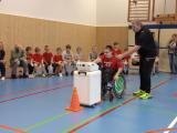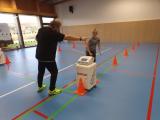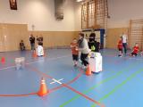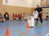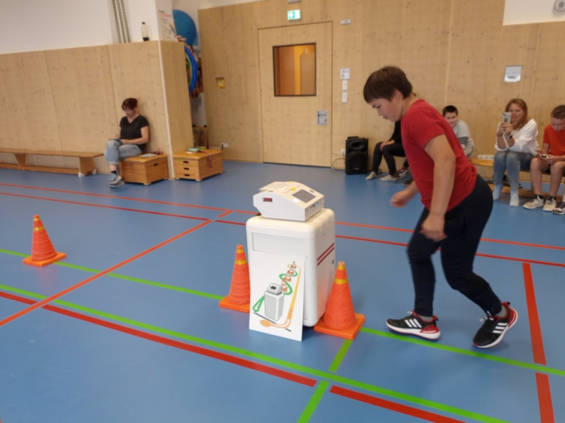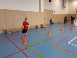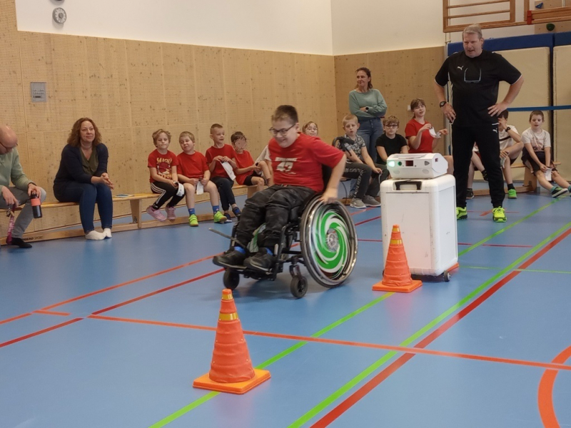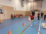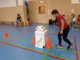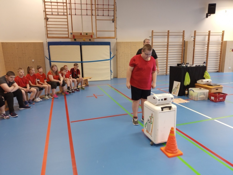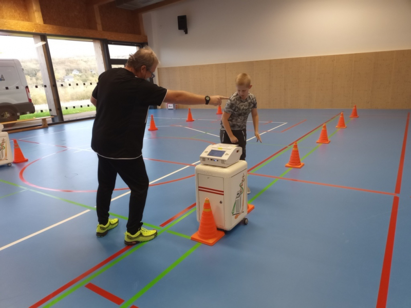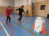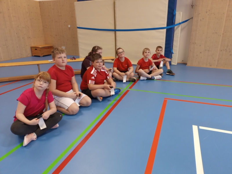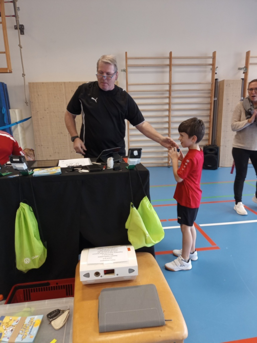 Am 9. November 2023 hatten wir duch die Unterstützung vom EDEKA-Markt Meyer wieder das Team vom Kinder-Sprint aus Leipzig in unserem Bewegungsraum zu Gast. Alle Grund- und Mittelstufenklassen waren eingeladen, ihre Bestzeiten auf einer kurzen Laufstrecke zu ermitteln. Gefragt war dabei aber nicht nur die das schnelle Laufen, sondern auch Gewandheit und Reaktion denn nach dem Drücken eines Startbuttons leuchtete erst nach ein paar Sekunden das Startlicht, welches angab, ob nach rechts oder links gestartet werden musste. Es folgte eine 10m lange Sprintstrecke bis zu einem Wendkegel, den man umlaufen musste um dann den Rückweg im Slalomlauf zu bewältigen.