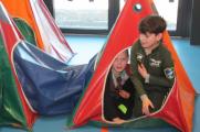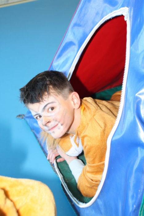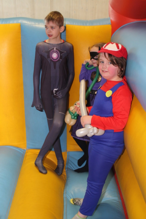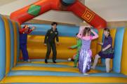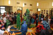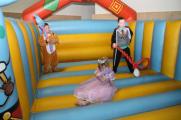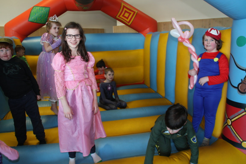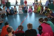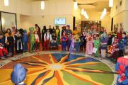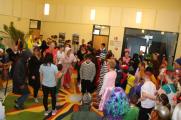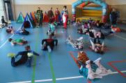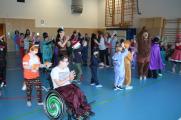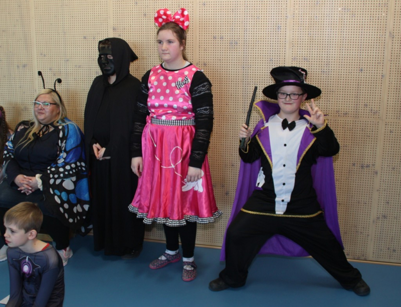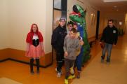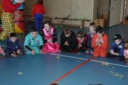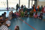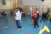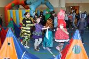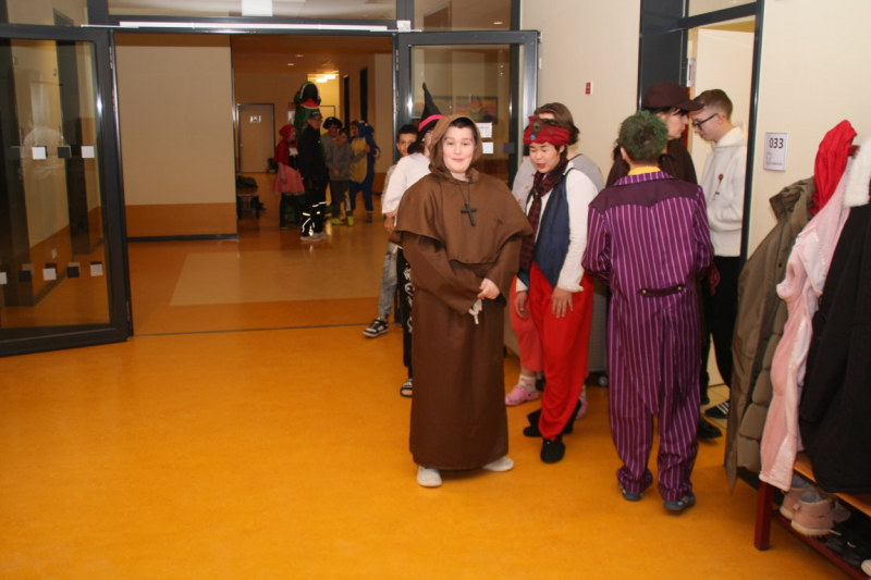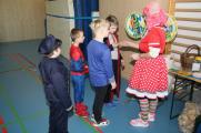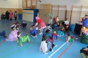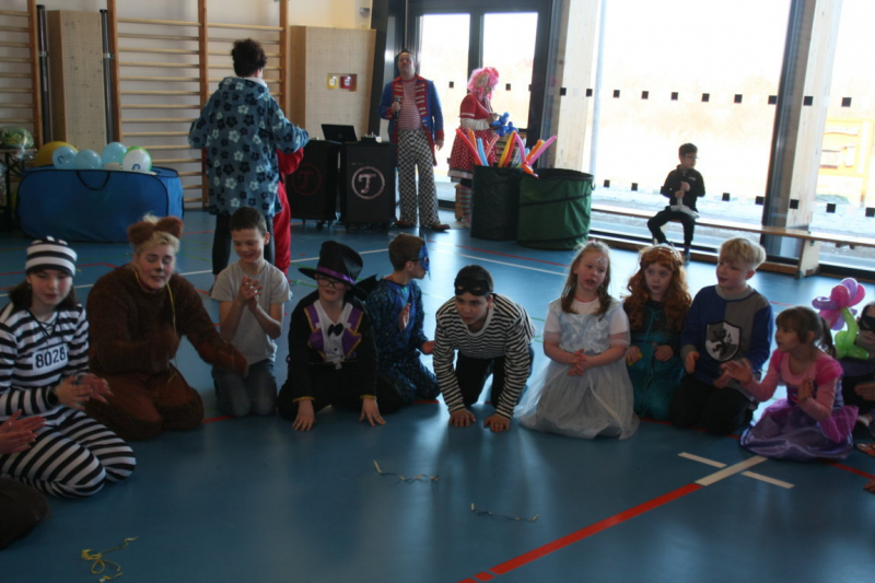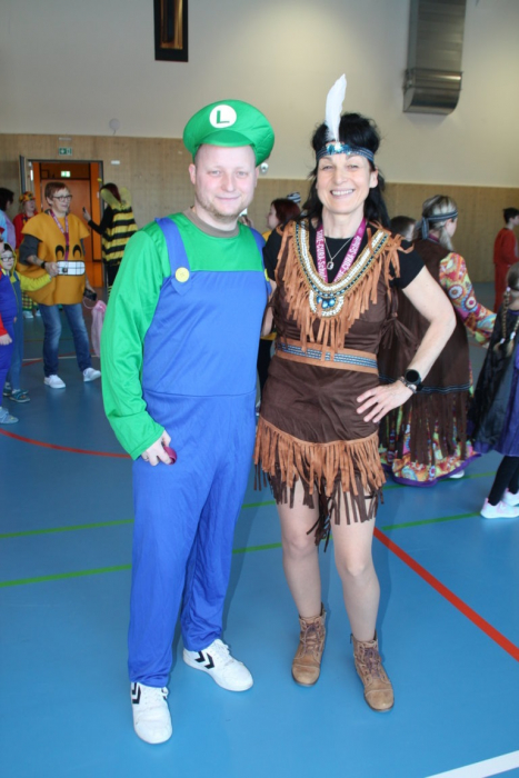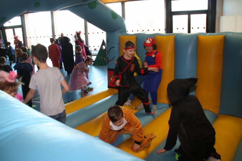 Fröhliches Treiben und gute Stimmung herrschte in unseren Räumen am 19. Februar. Die große Faschingsfeier stand auf dem Plan. Bunt kostümiert kamen alle am Morgen in die Schule und stimmten sich zum Frühstück in den Klassenräumen auf den Tag ein. Gemeinsam trafen wir uns dann auf der Sonne, um mit allen Schülern und Pädagogen die Feier zu eröffnen. Im Bewegungsraum wartete im Anschluss Clown Haraldinio, der erst mit den jüngeren und danach mit den größeren Schülern feierte, tanzte und verschiedene Spiele spielte. Außerdem gab es eine Hüpfburg, eine Krabbelstrecke und ein Glücksrad.