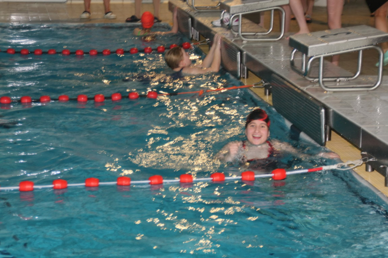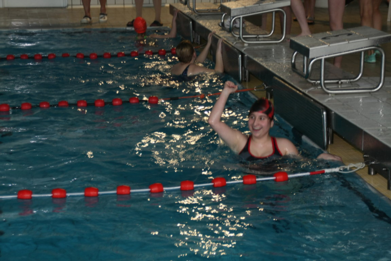 Somit gingen für uns Leonie T., Lea B., Lara H., Leon K., Pascal L., Nick K. und Mathias W. ins Wasser und waren motiviert, unter die drei besten Teams zu kommen, was die Qualifikation für das Landesfinale bedeuten würde.